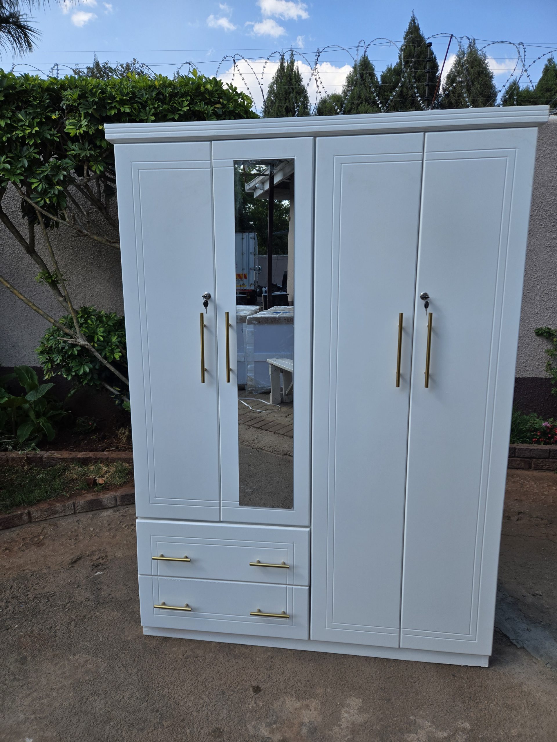Maximize your bedroom storage with this elegant wardrobe, designed to provide ample space for your clothing, shoes, and accessories. Featuring multiple shelves, drawers, and hanging rods, this wardrobe keeps your belongings organized and easily accessible. Crafted with high-quality materials and a sleek finish, it adds a touch of sophistication to any bedroom. Perfect for storing out-of-season clothes, linens, or personal items, this wardrobe is a practical and stylish solution for your storage needs