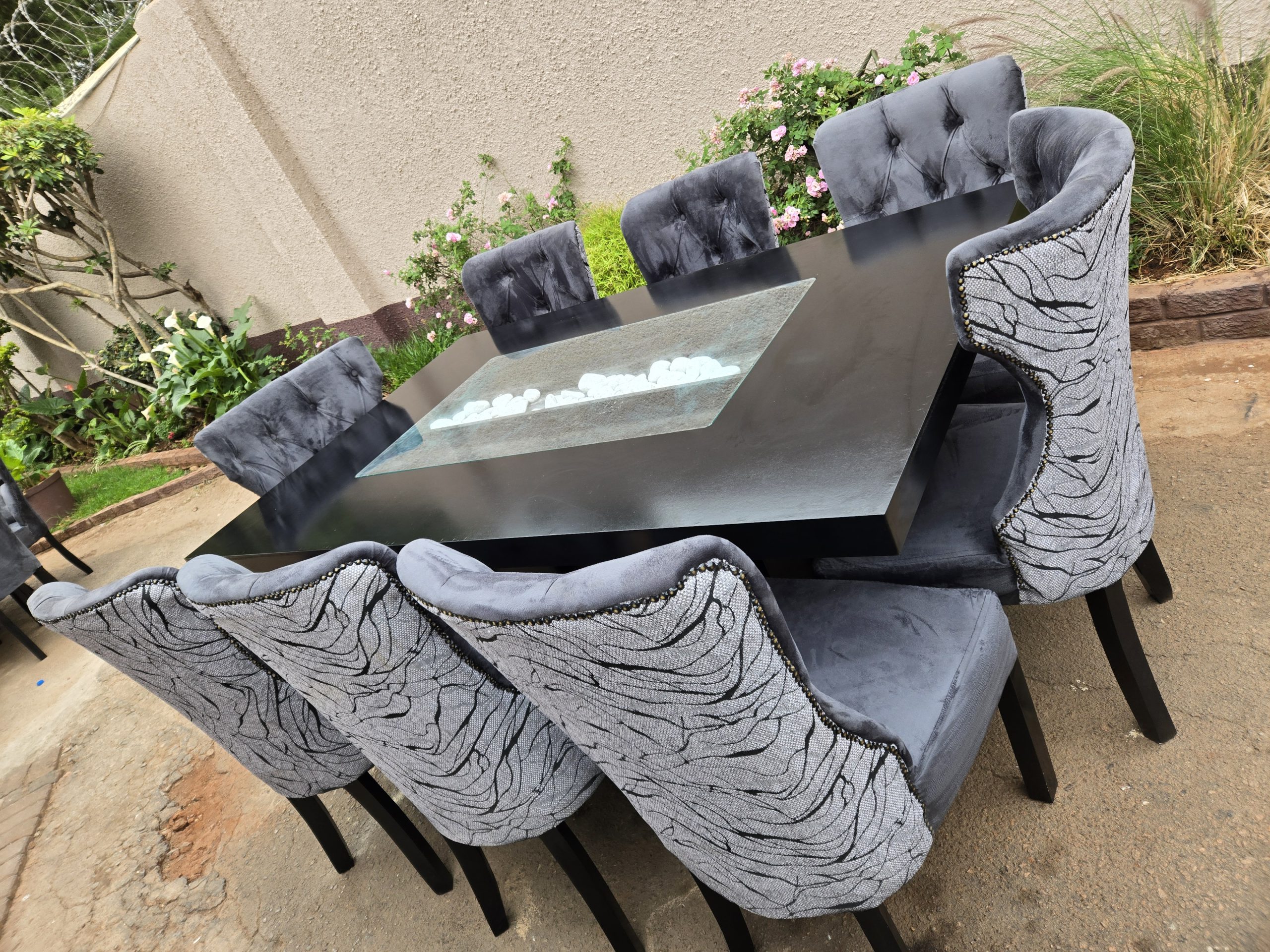 Create a warm and inviting atmosphere with our Dining table and chairs set. The sturdy table features a beautiful finish and spacious surface, while the comfortable chairs offer ergonomic support and easy-to-clean upholstery, perfect for family meals and gatherings